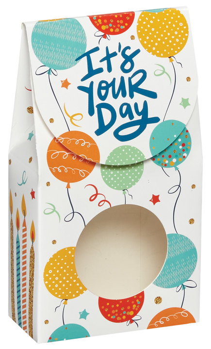 Gourmet gift boxes are great to use for gift and gourmet food packaging, party favors and grab n go gifts. These boxes have a Velcro lid closure, clear acetate window, gloss finish and hold up to 1 pound of product. Boxes comes packed in 6's and are shipped flat.